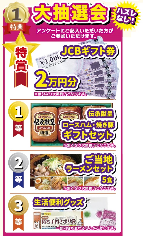 アンケートにご記入いただいたお客様を対象に大抽選会を行います。