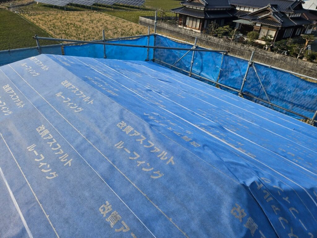 粉塵や破片が飛散しないよう養生を徹底しながら、瓦とルーフィングを丁寧に撤去しました。