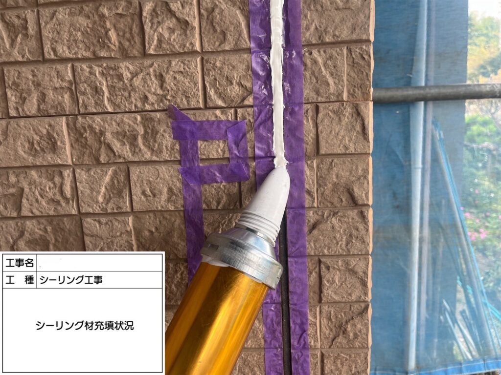古くなったコーキング材を取り除きプライマーを塗布します。
