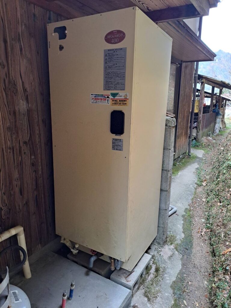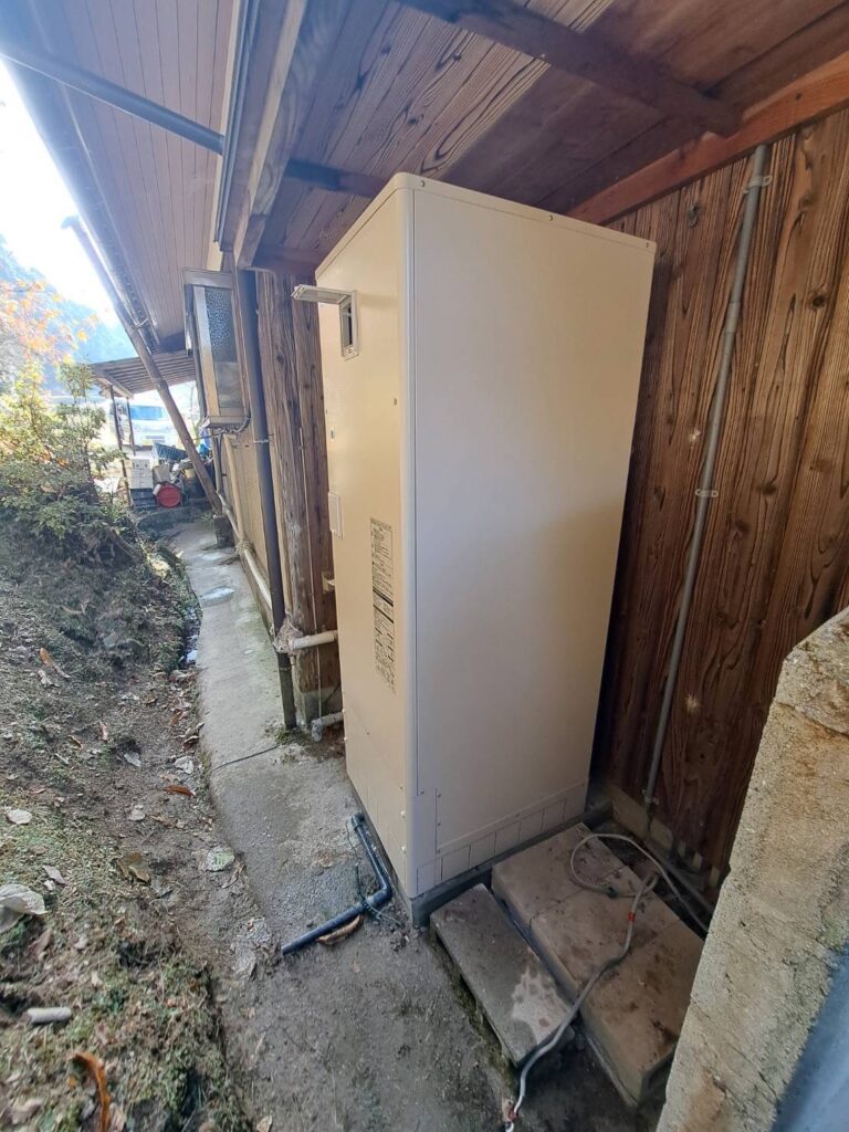 コンクリートがしっかりと固まったら、既存の温水器を撤去、新しい電気温水器を設置します。