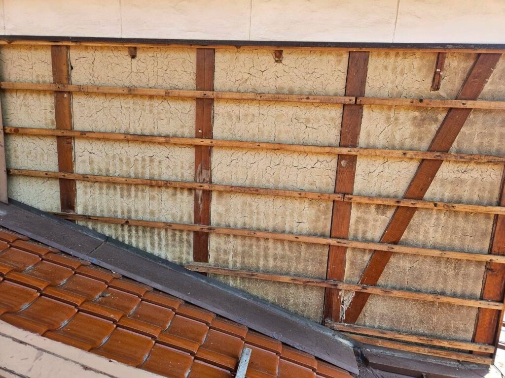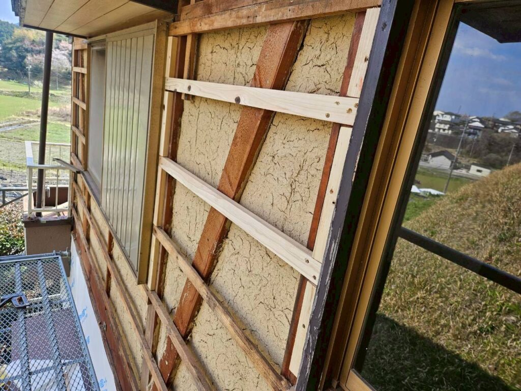 劣化した外壁材を丁寧に取り外し、下地の状態を確認。