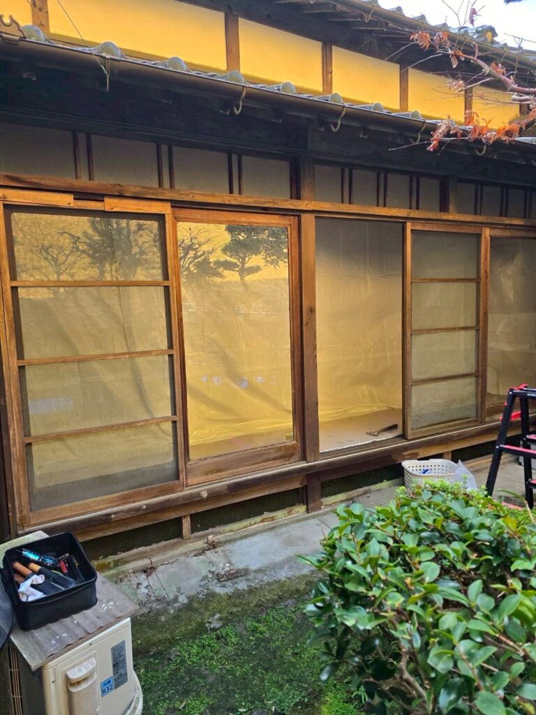 外壁や木枠の一部を改修して、新しいサッシの取り付けスペースを確保します。