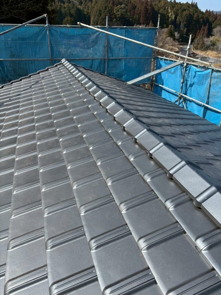 屋根全体を葺き替え、棟部分もしっかり施工して工事完了です。