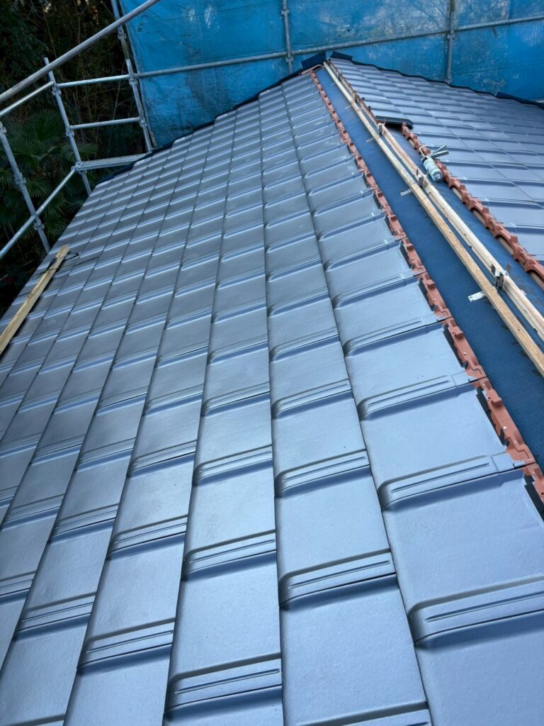 屋根の防水性能を高めるために、新しいルーフィングを施工、新たな瓦を施工します。