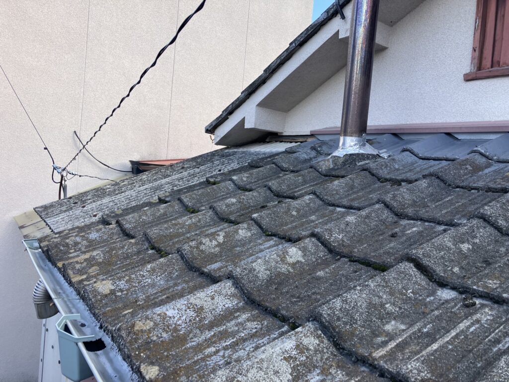 今回のお客様のお宅では、築年数の経過により、色あせ、塗膜の劣化、瓦谷板の劣化、防水性能の低下、コケやカビの発生がみられました。