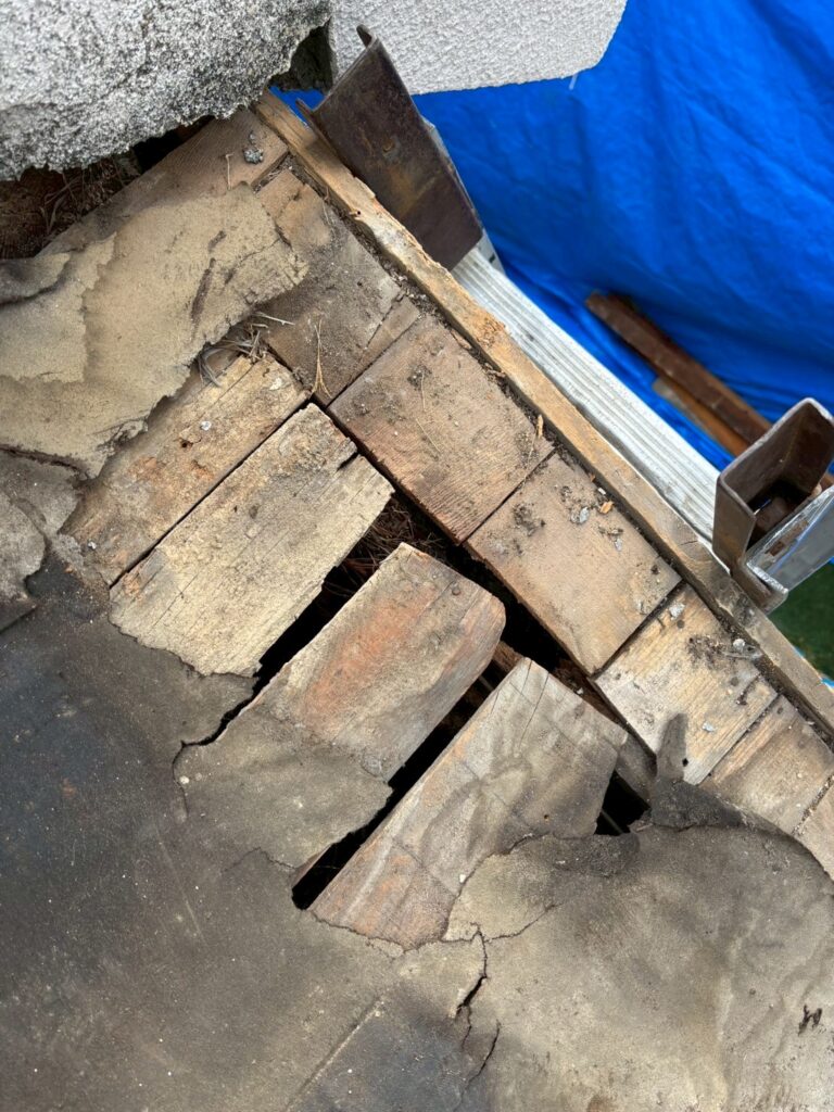 長年の雨風により傷んでいた箇所は補修・増し張りを行い、屋根の強度を確保します。