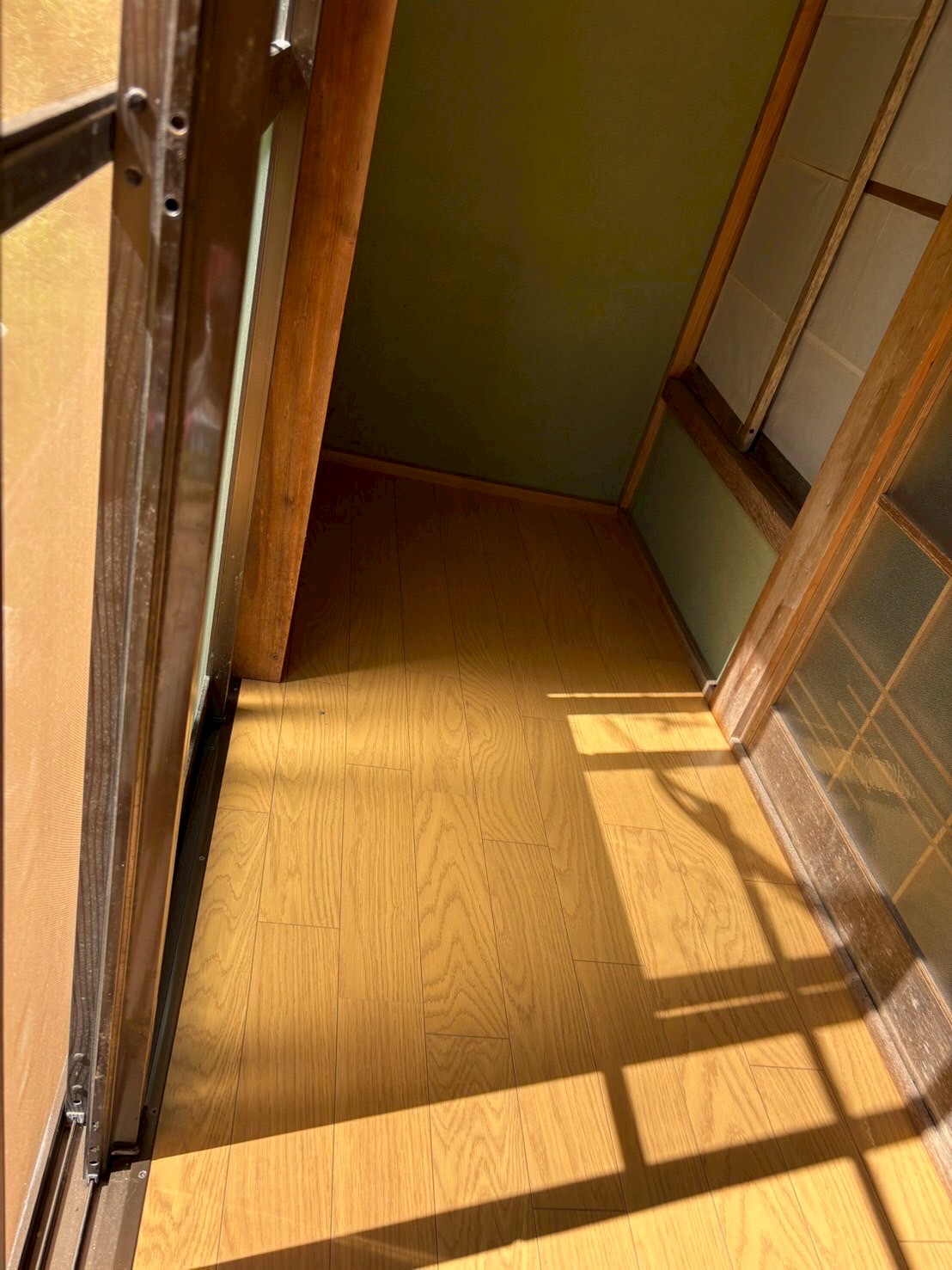 廊下です。新たな床材を重ね張りします。