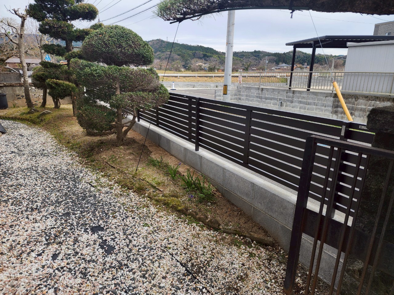 - 既設のブロック塀にひびが入ったので見てほしいとご相談をいただきました。道路に面し、倒壊の危険性もある施工年数の経過したブロック塀でした。今後のことを考慮し、ブロック塀を撤去、アルミ製のフェンスを新設するご提案をさせていただきました。