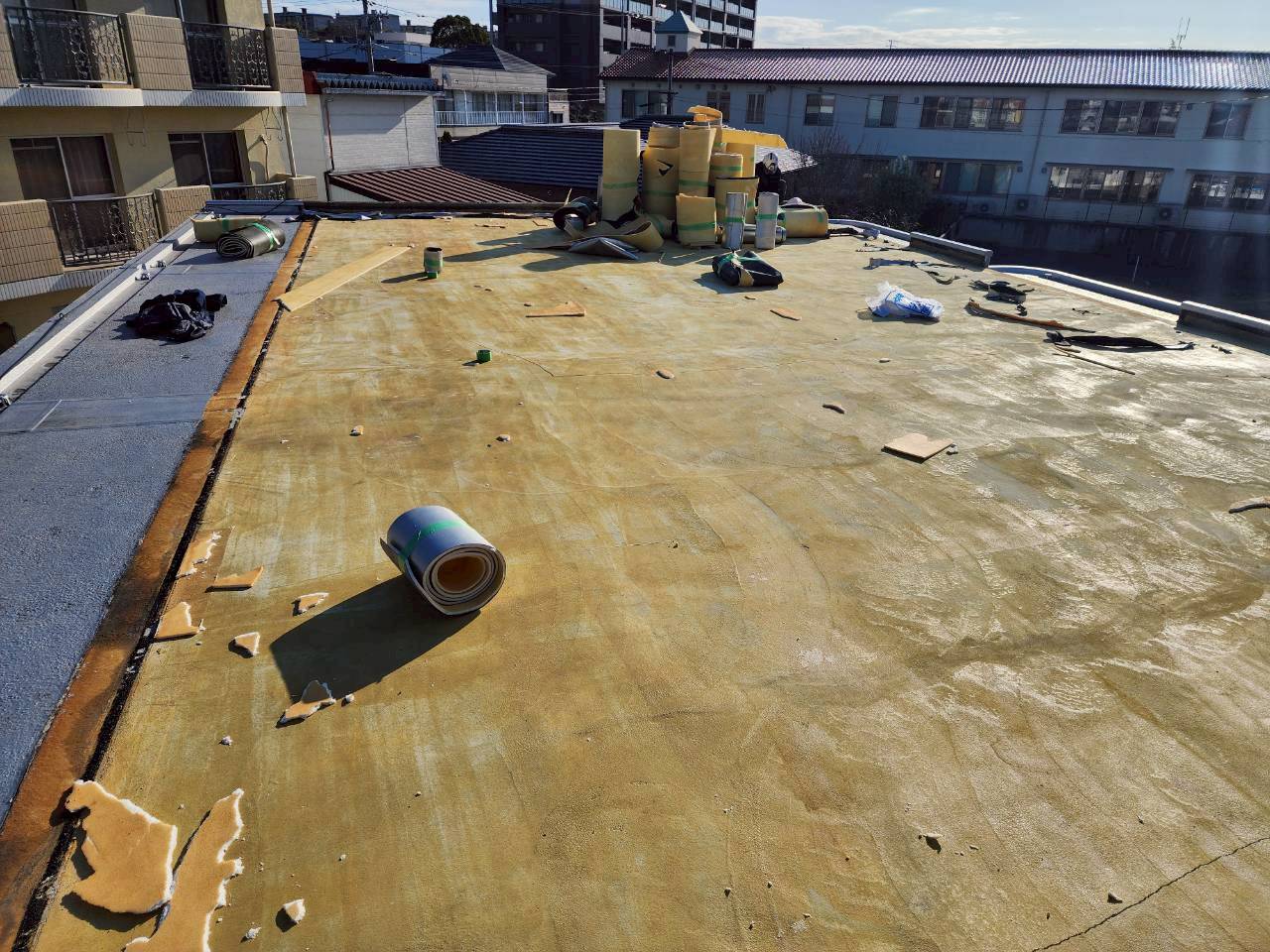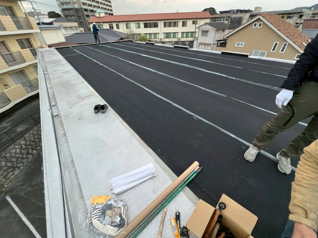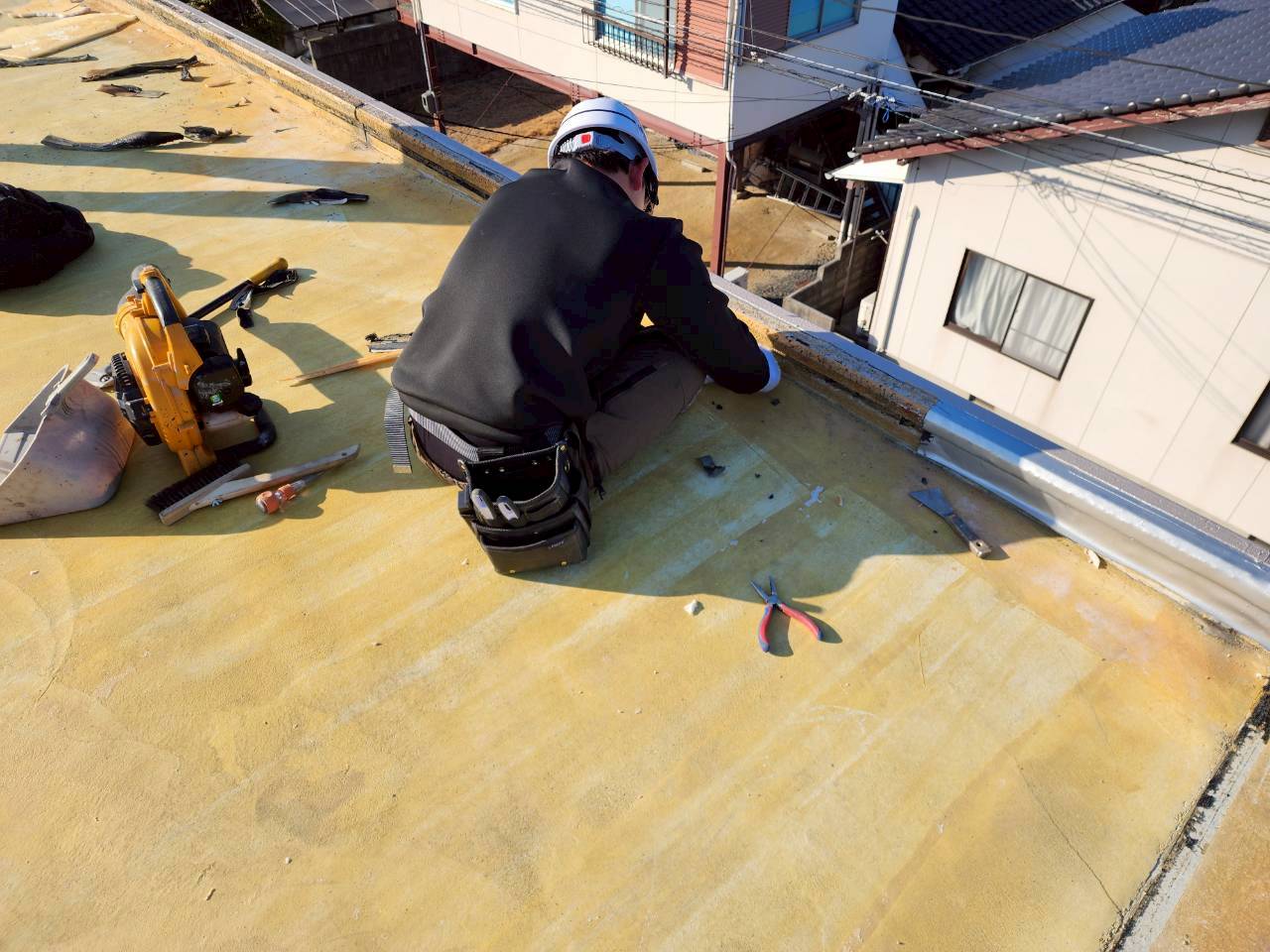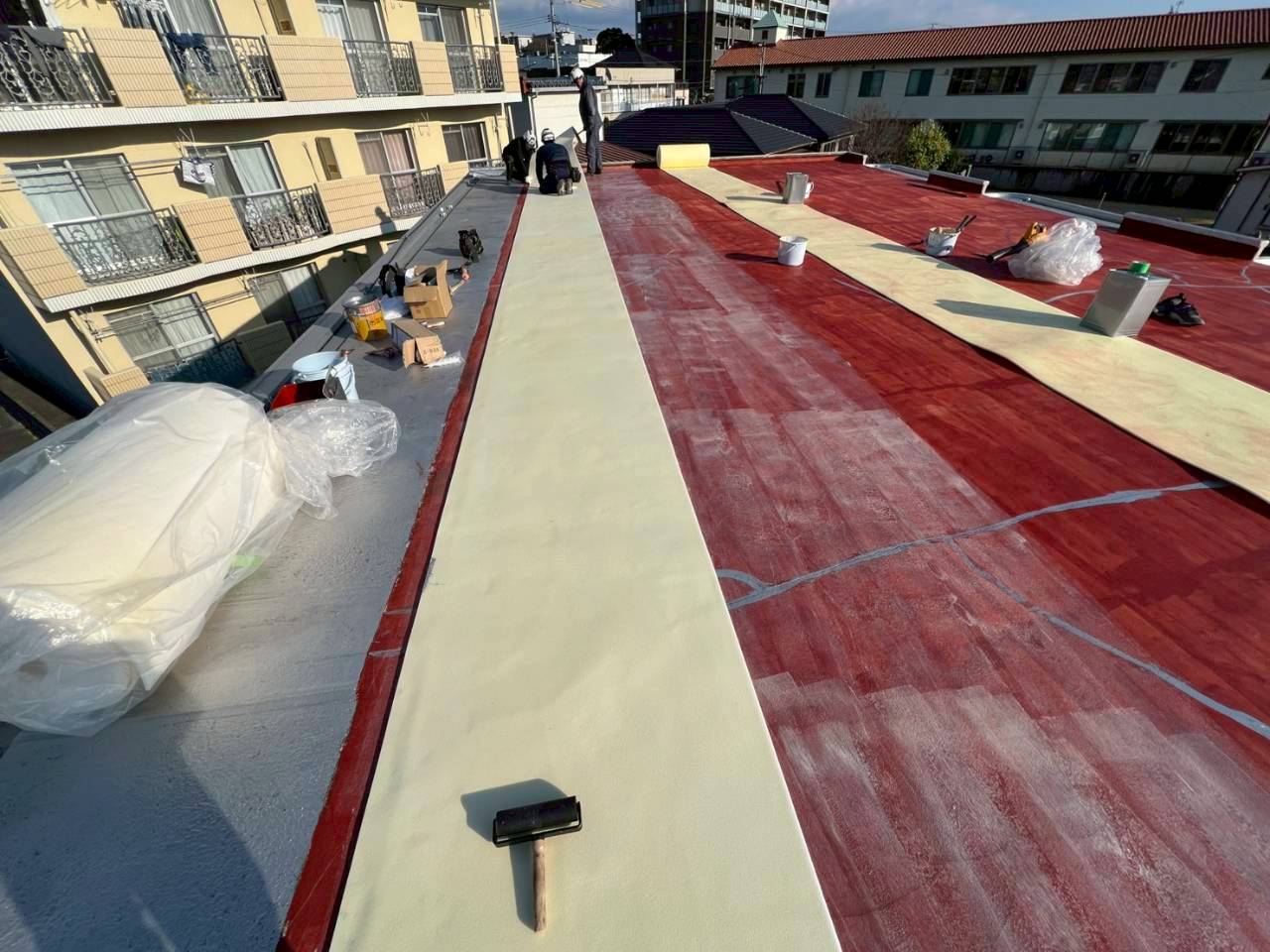 プライマーを塗布、加硫ゴム系シートを敷設します。
