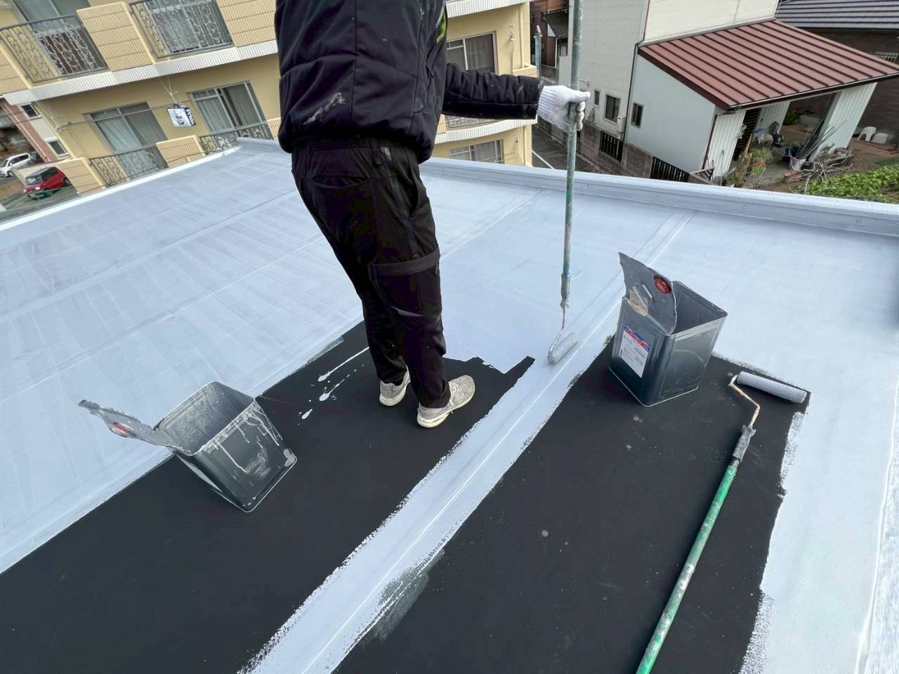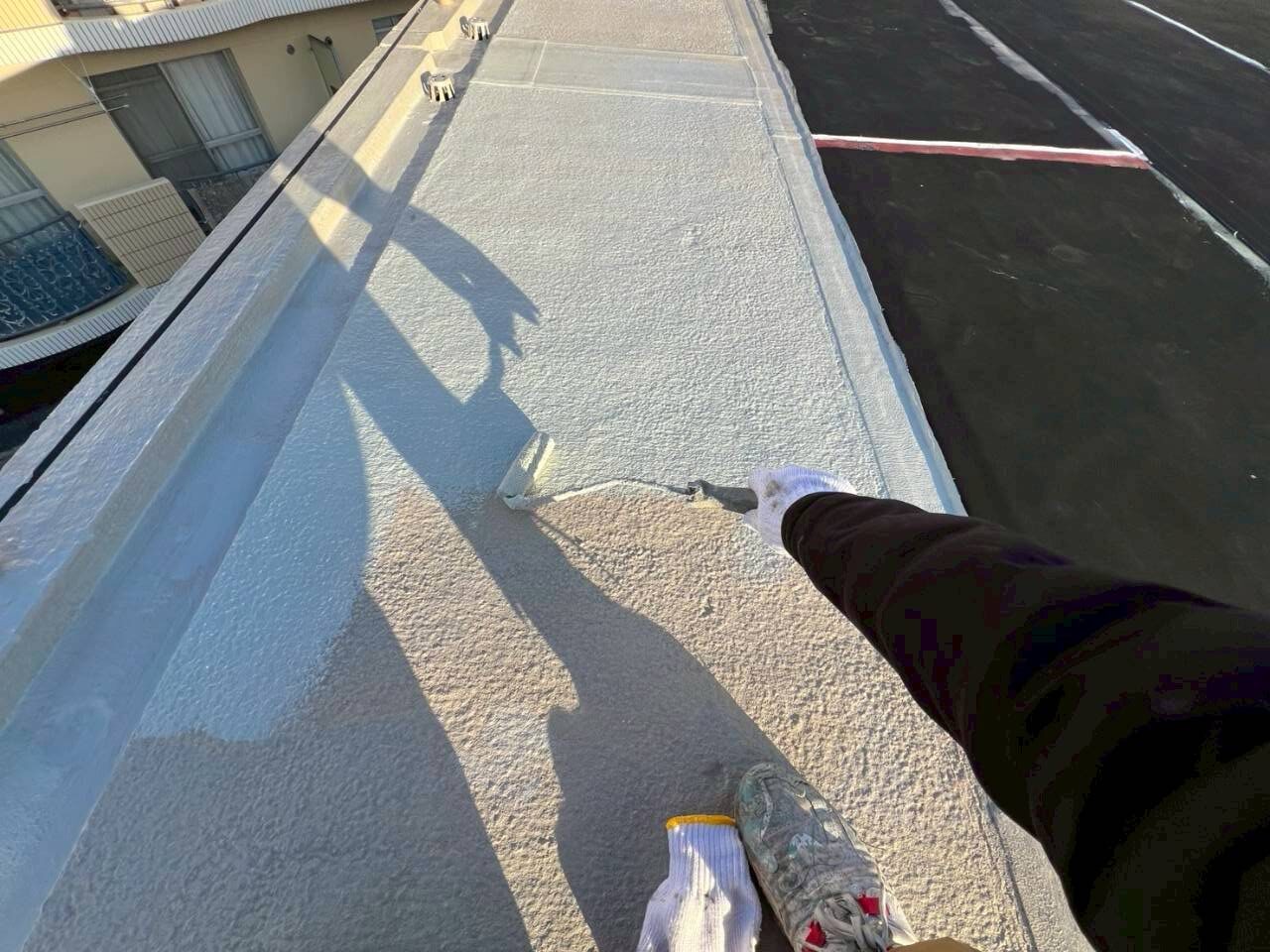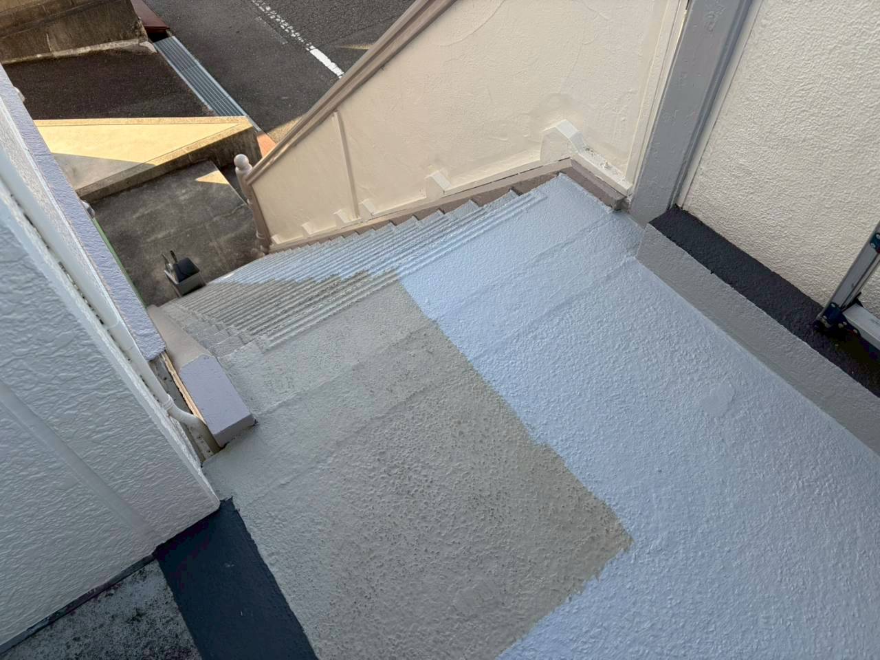 ベランダ上部、階段はポリマーセメント系塗膜防水を施します。