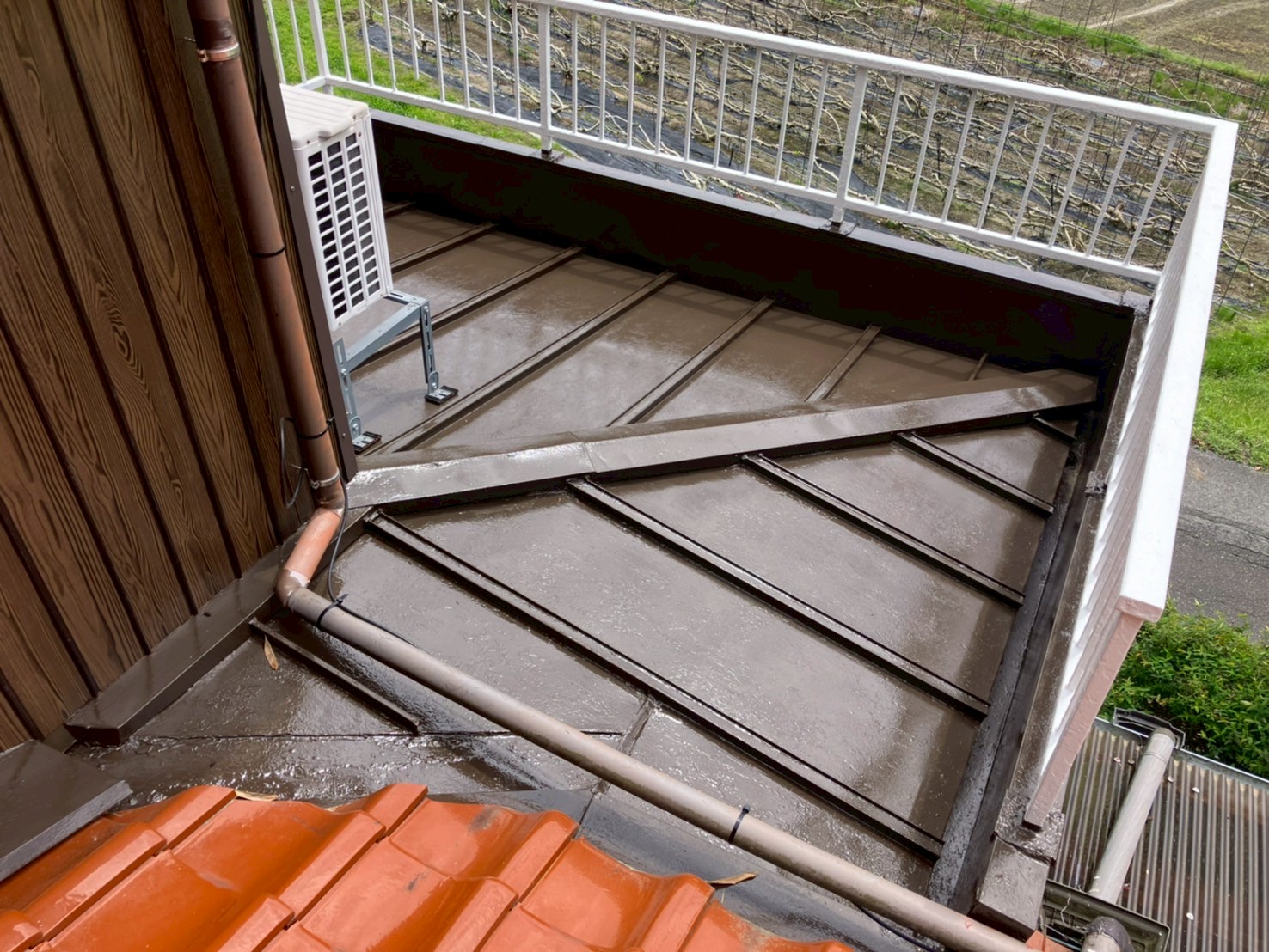 瓦棒屋根のケレンを行い、下地を整えます。