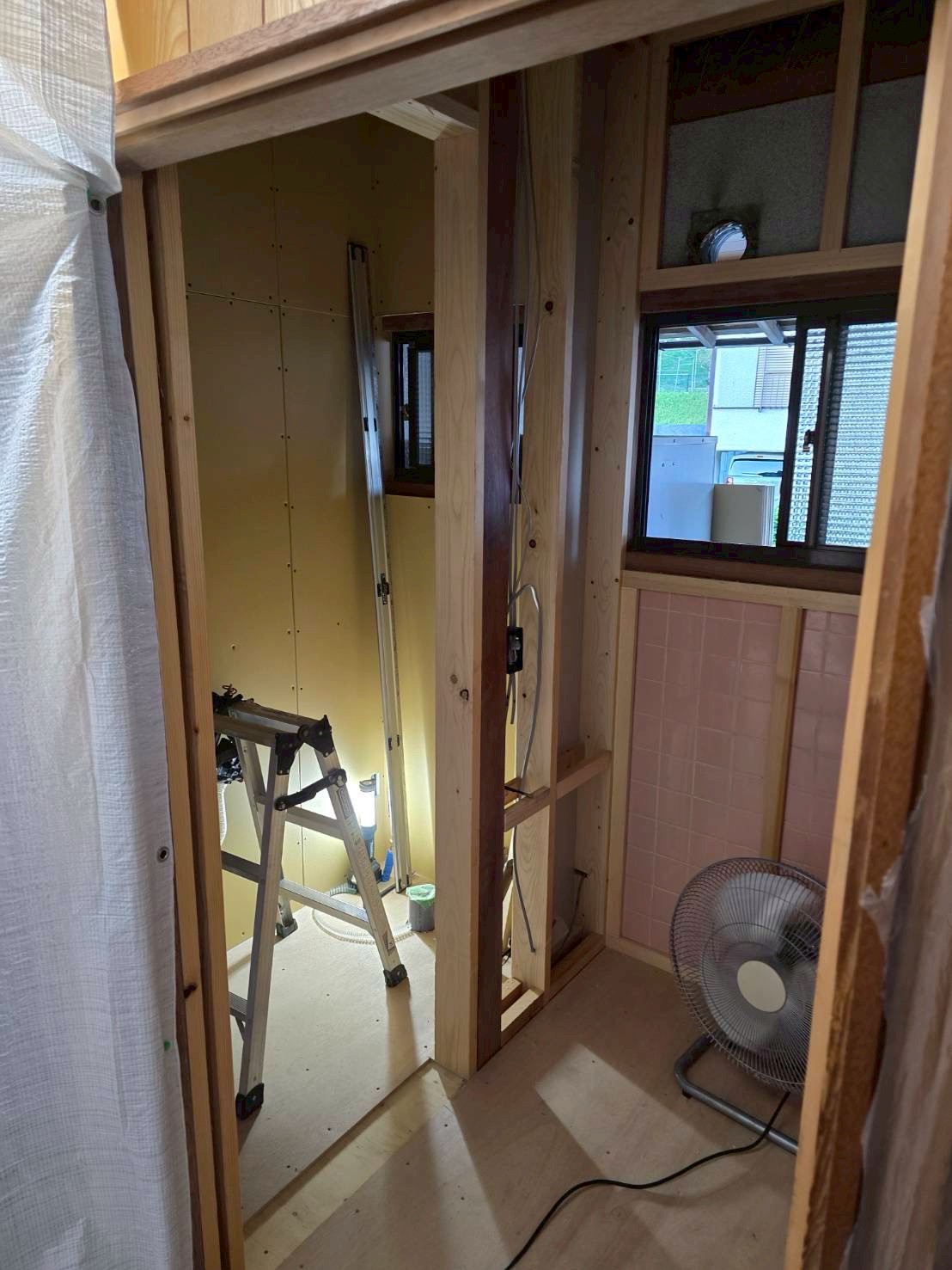 壁は石膏ボード、仕上げにクロスを貼ります。