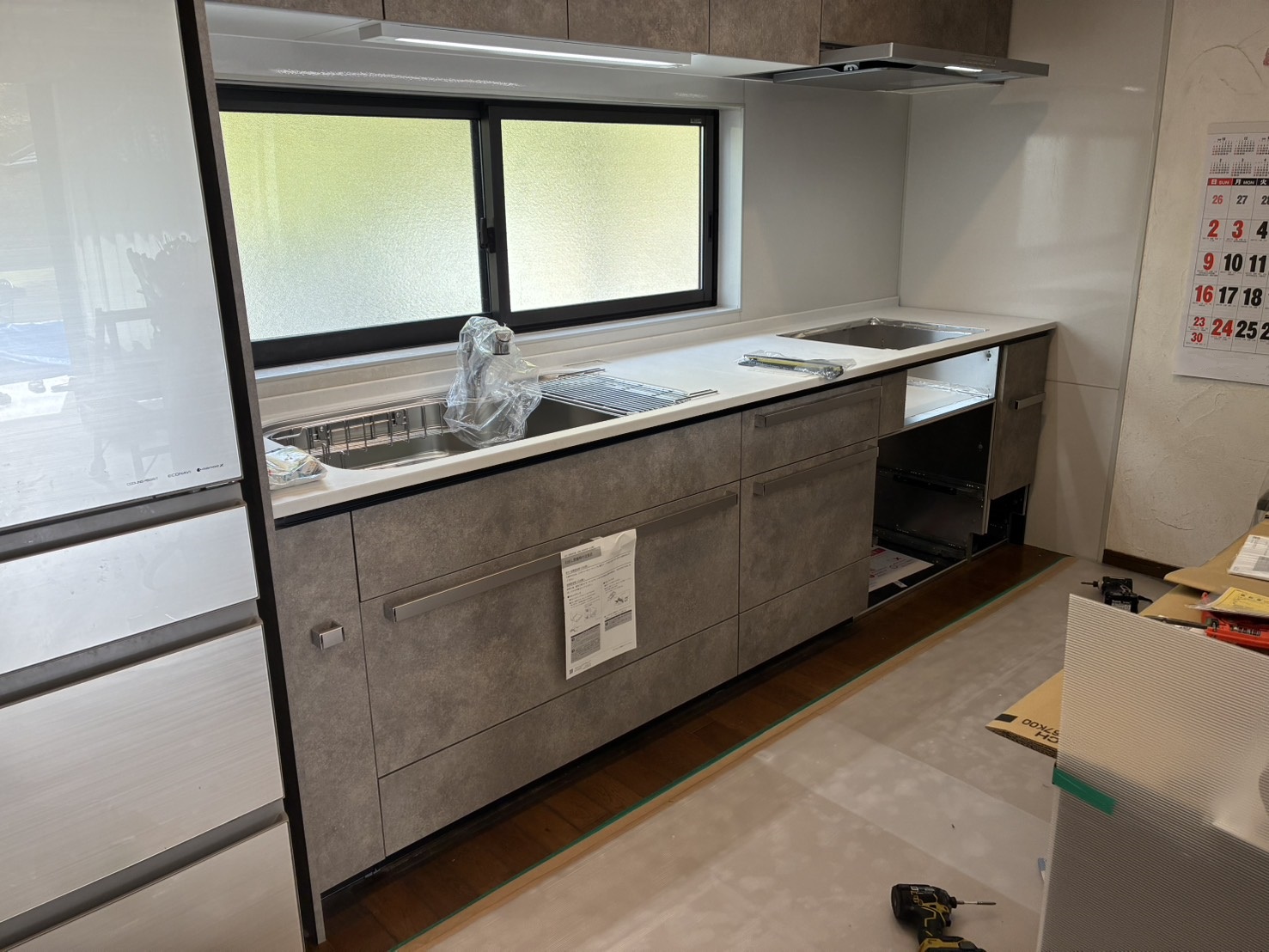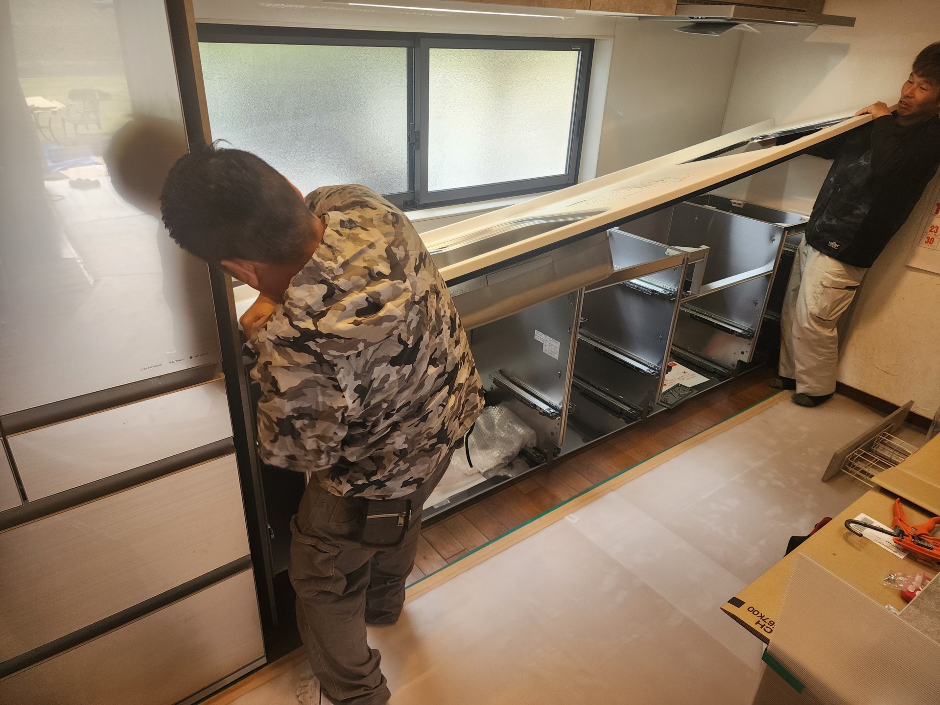 新しいシステムキッチンを取り付けます。