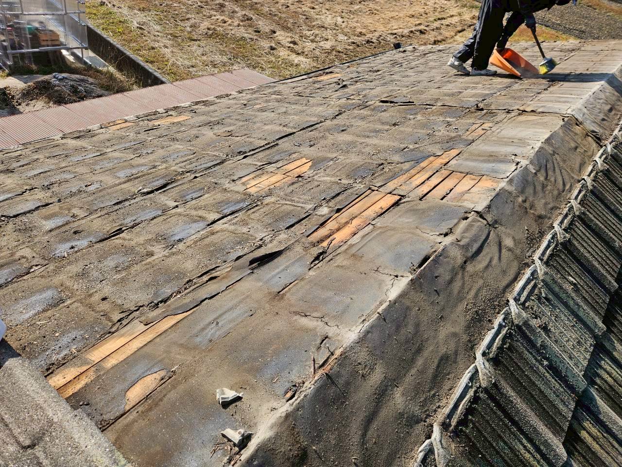 既存のセメント瓦を撤去します。
