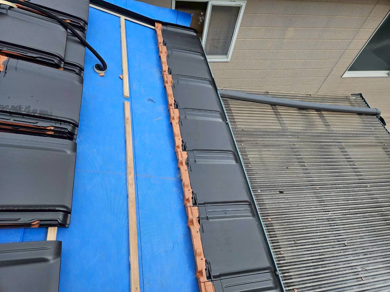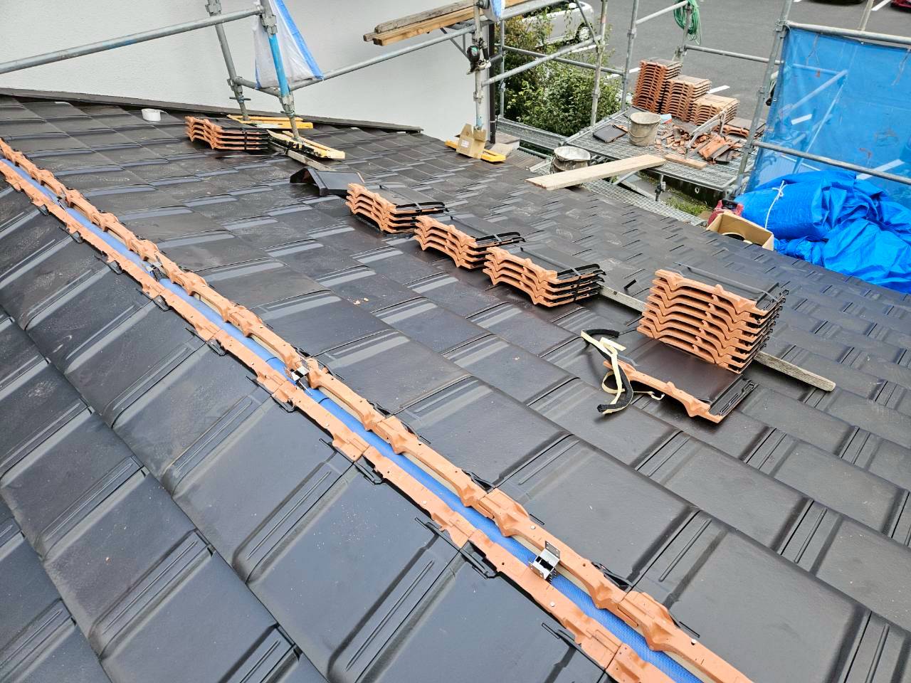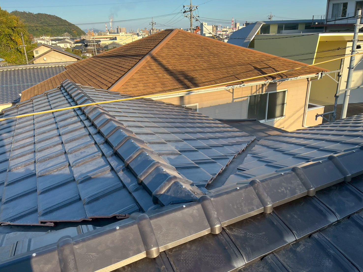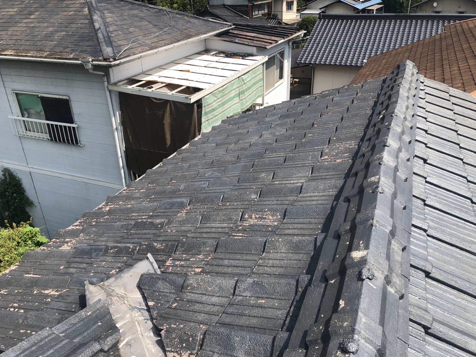 - 雨漏り診断のご依頼を頂きました。既存屋根のセメント瓦は塗装の剥がれ、破損があり瓦自体の劣化も進んでいたので塗装不要で高耐久の陶器瓦への葺き替えをご提案させて頂きました。
