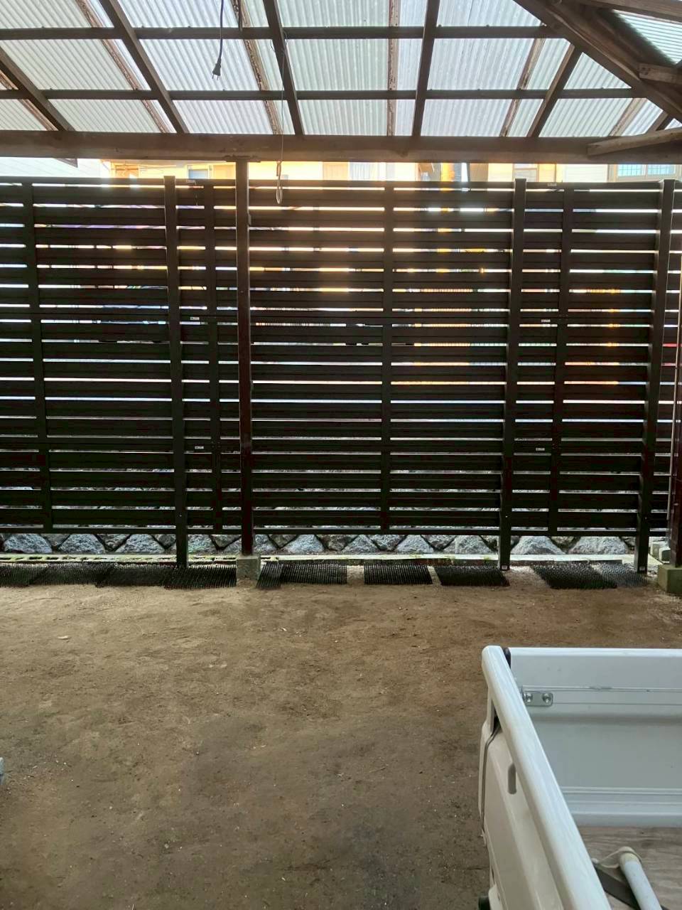 フェンスの支柱を固定するためコンクリート基礎を施工します。
