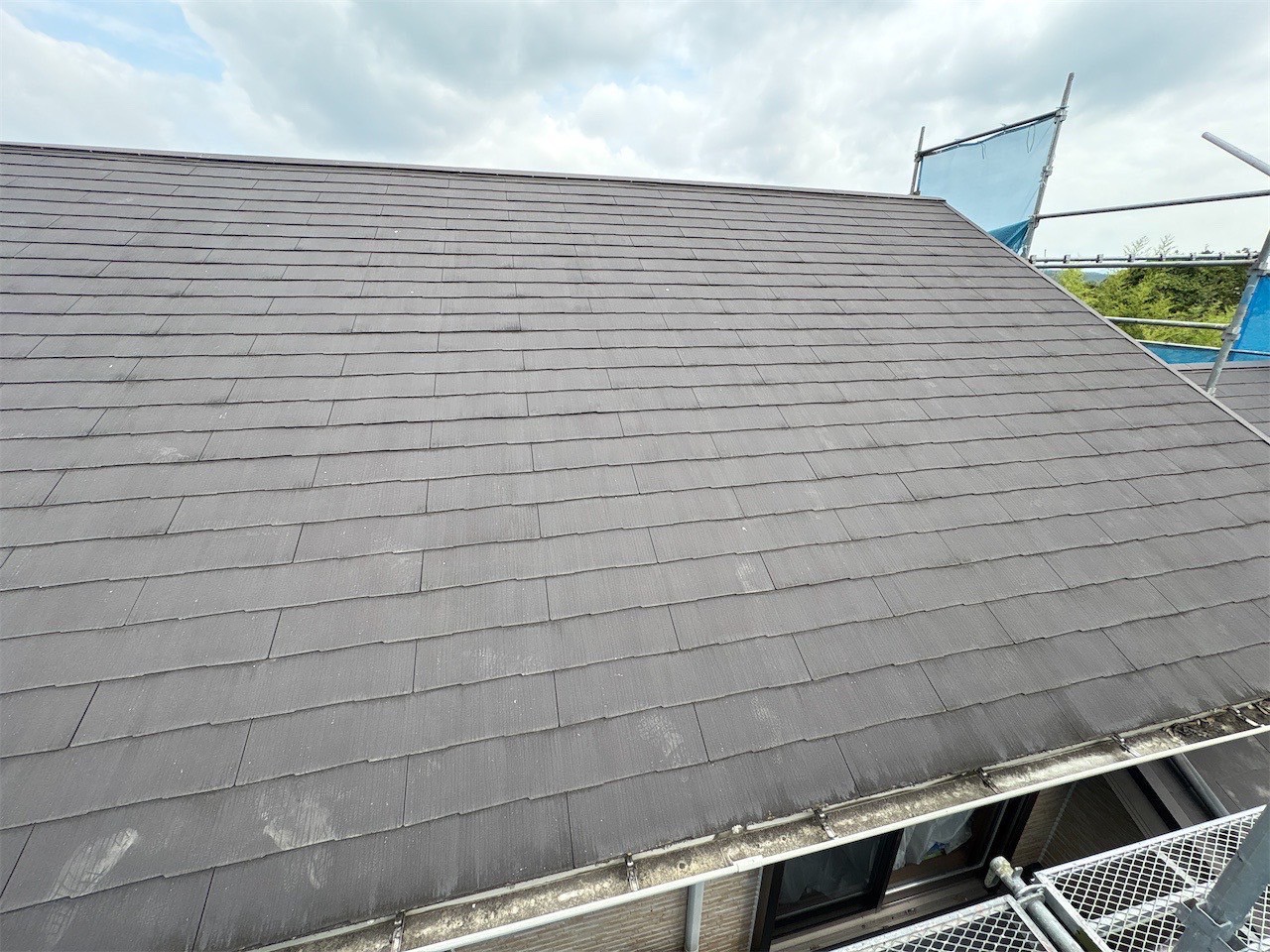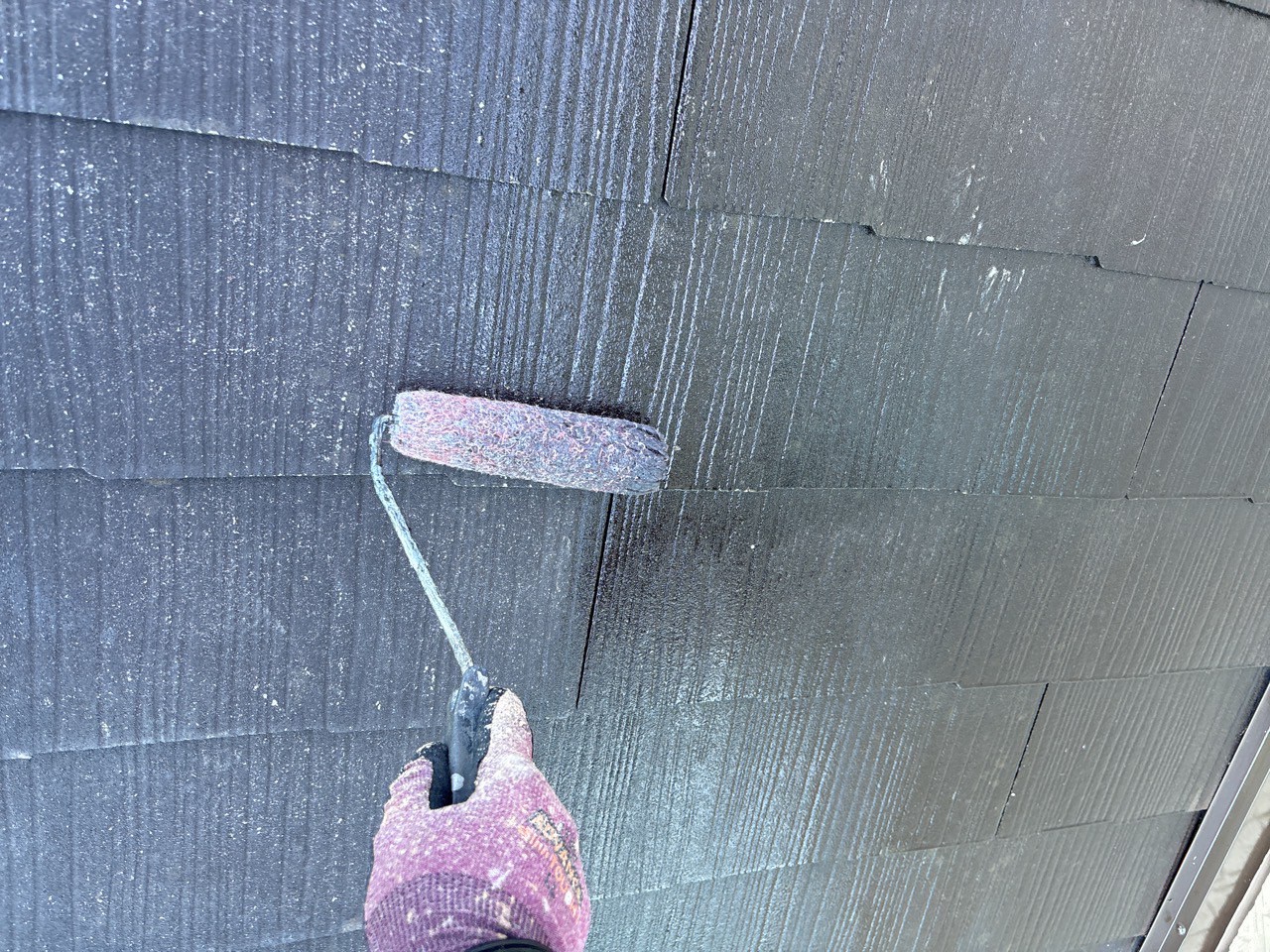 上から塗る塗料と屋根材の密着性を高めるシーラーを塗ります。シーラーは内部に浸透し、弱った下地を固めて補強します。